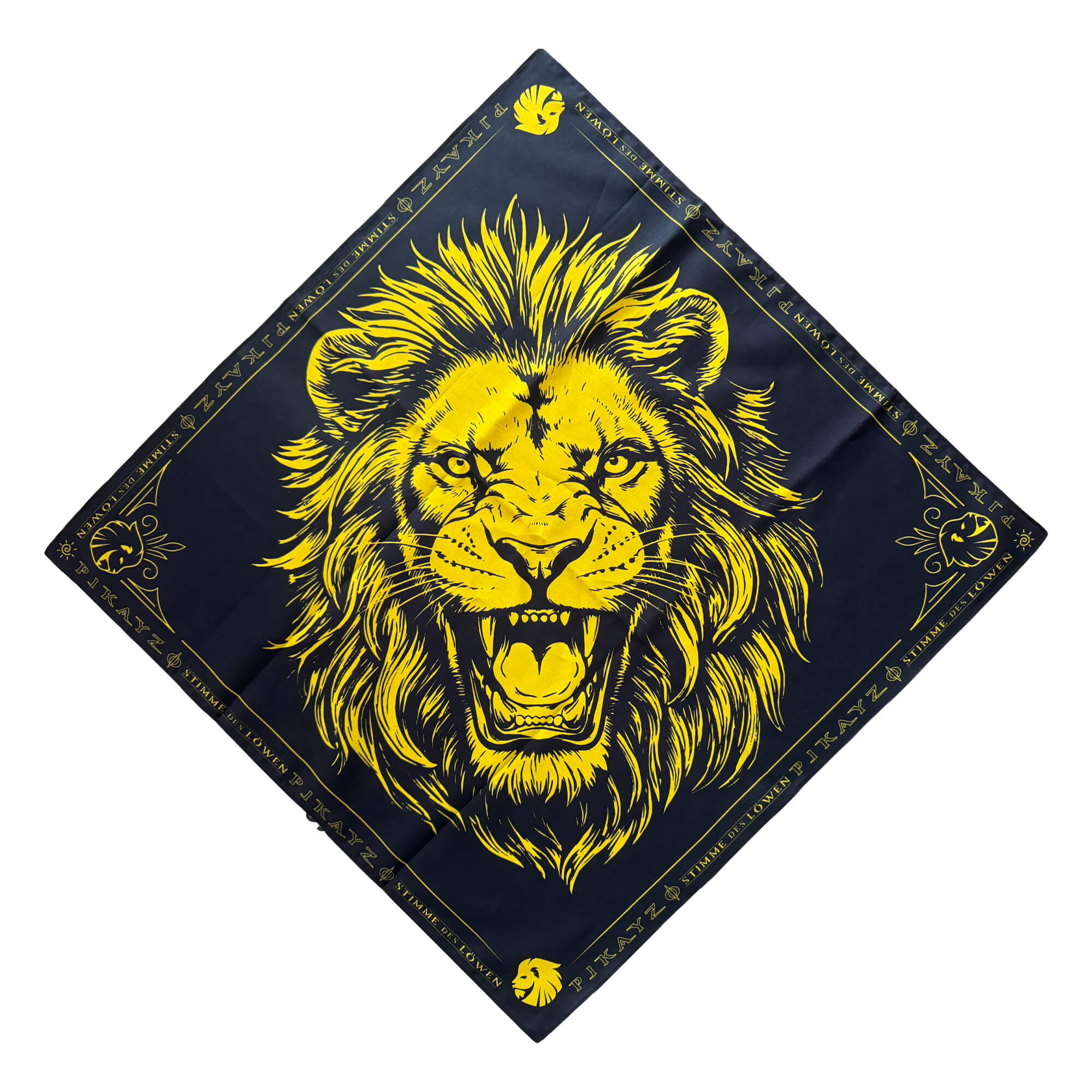 (Löwenkopf Vorderseite gestickt / Zitat Rückseite gedruckt. Material: 100% Baumwolle) - Bandana (Material: 100% Baumwolle)
